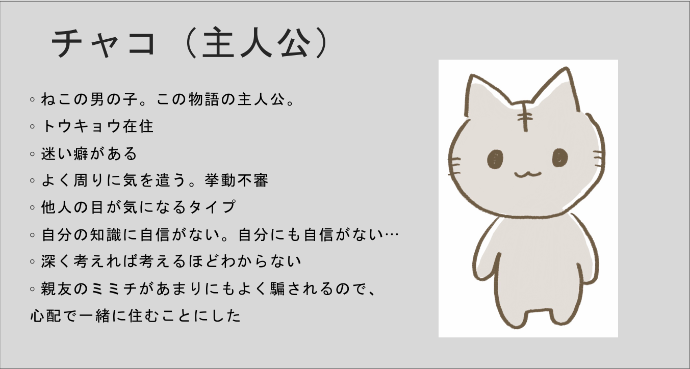 日本によく似たトウキョウという街があり、チャコとミミチはそこに住んでいる。